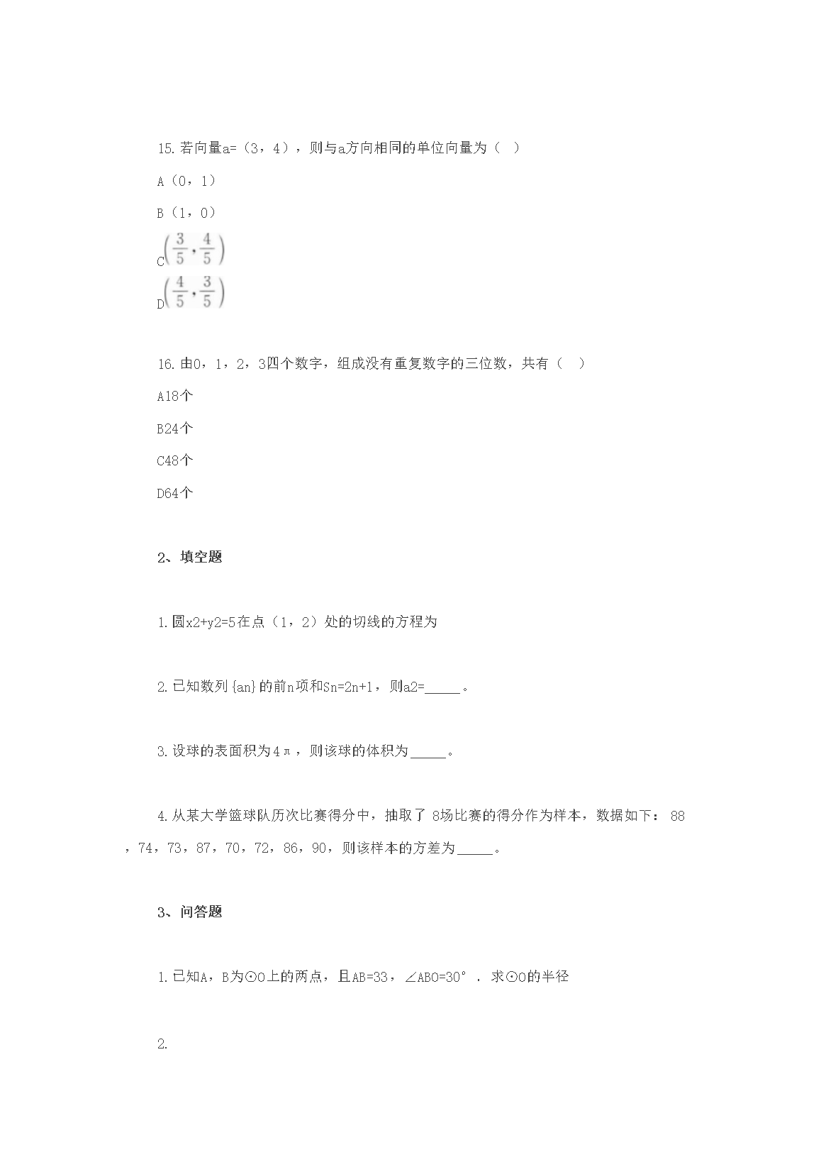 【文档名称】 2021年海南成人高考高起点数学(理)考试真题及答案(Word版).doc