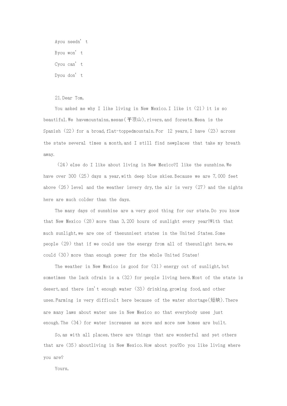 【文档预览】 无忧考网整理发布2021年海南成人高考高起点英语考试真题及答案(Word版),前五页预览如下: