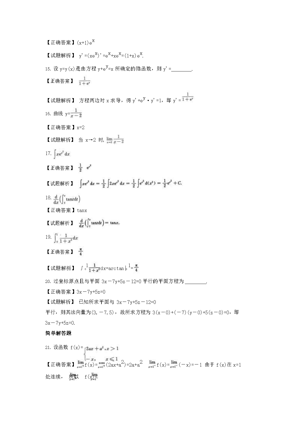 【文档名称】 2021年海南成人高考专升本高数(一)考试真题及答案(Word版).doc