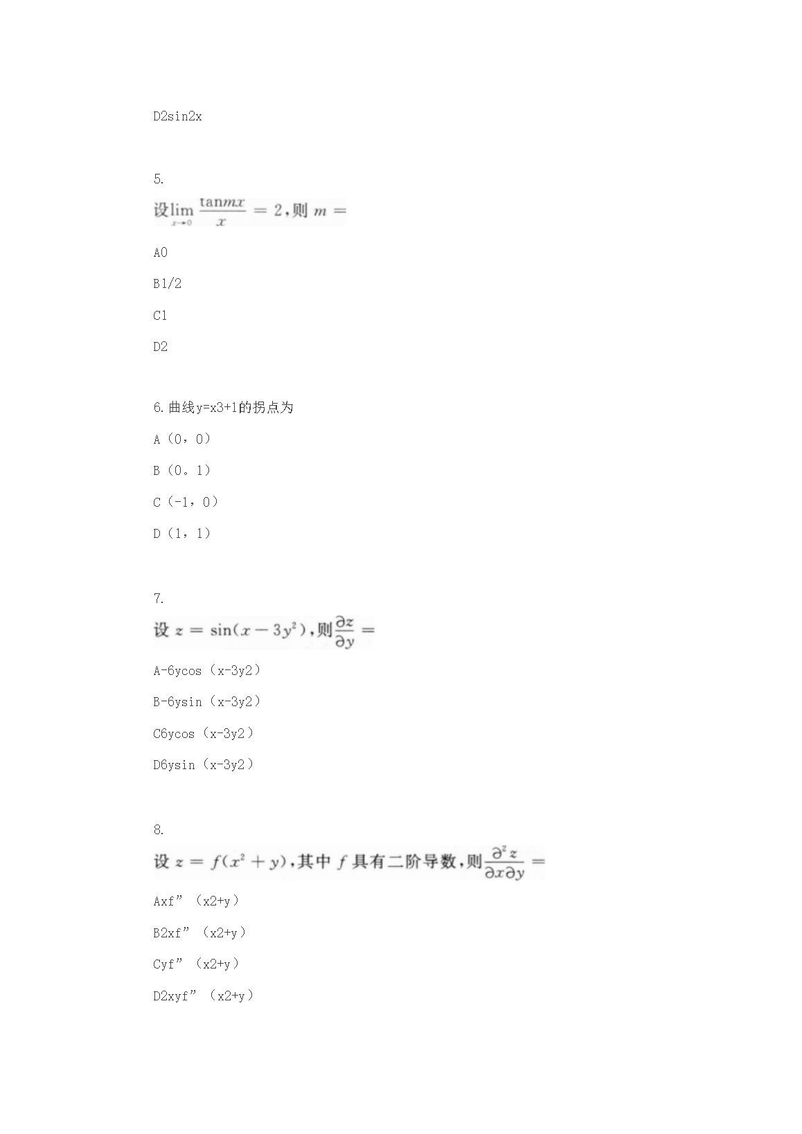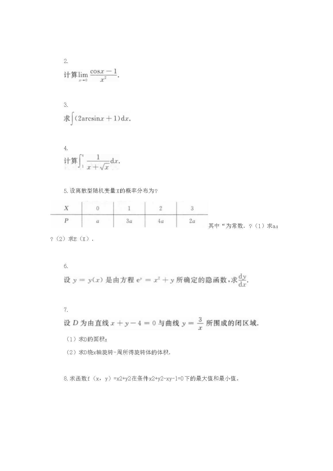 【文档预览】 无忧考网整理发布2021年海南成人高考专升本高数(二)考试真题及答案(Word版),前五页预览如下: