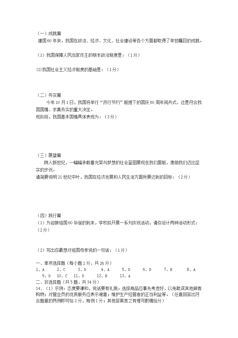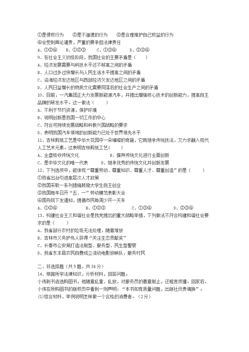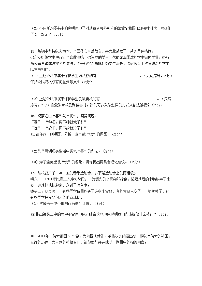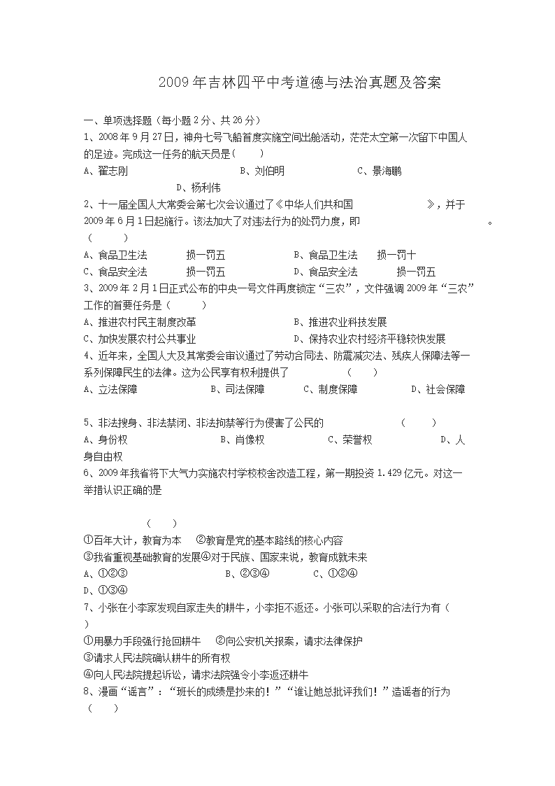 【文档名称】 2009年吉林四平中考道德与法治真题及答案(Word版).doc