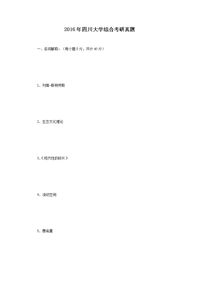 【文档预览】 无忧考网整理发布2016年四川大学综合考研真题(Word版),前五页预览如下:
