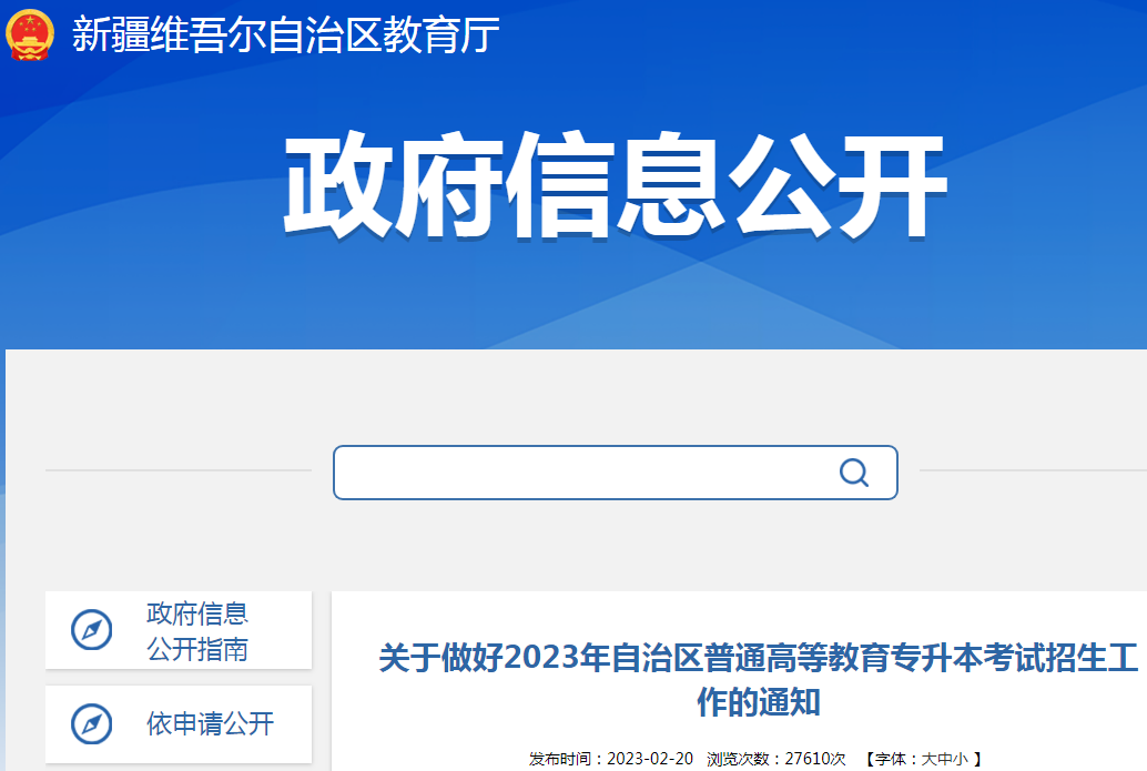 【#专升本考试# #关于做好2023年新疆普通高等教育专升本考试招生工作的通知#】®无忧考网专升本频道从新疆维吾尔自治区教育厅了解到,关于做好2023年新疆普通高等教育专升本考试招生工作的通知已发布,详情如下: