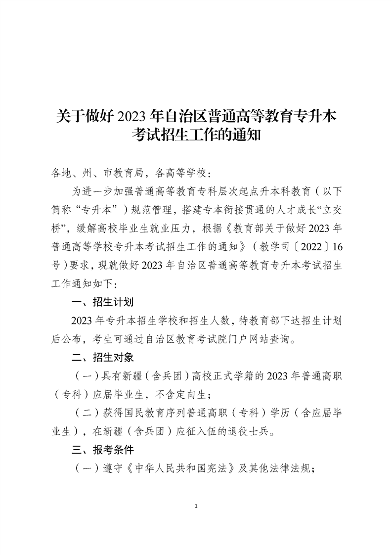 原文标题:关于做好2023年自治区普通高等教育专升本考试招生工作的通知