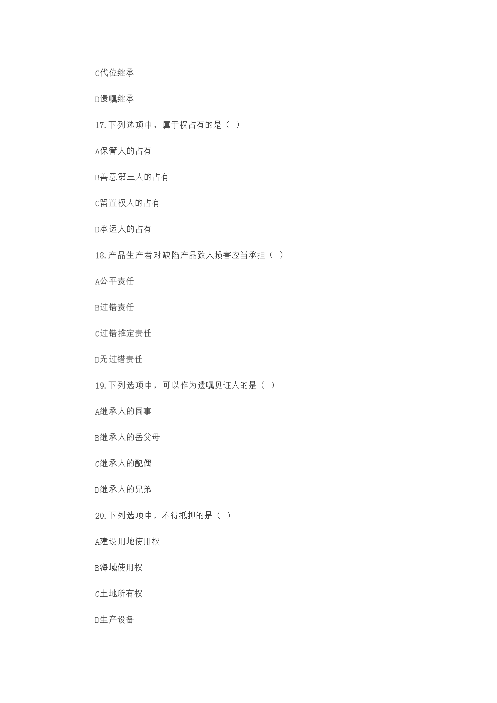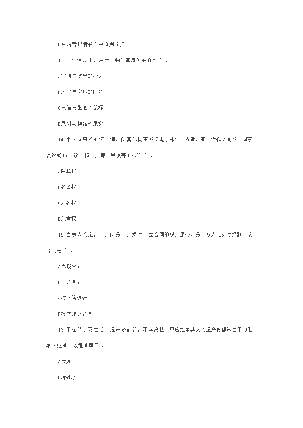 【文档名称】 2021年湖南成人高考专升本民法考试真题及答案(Word版).doc