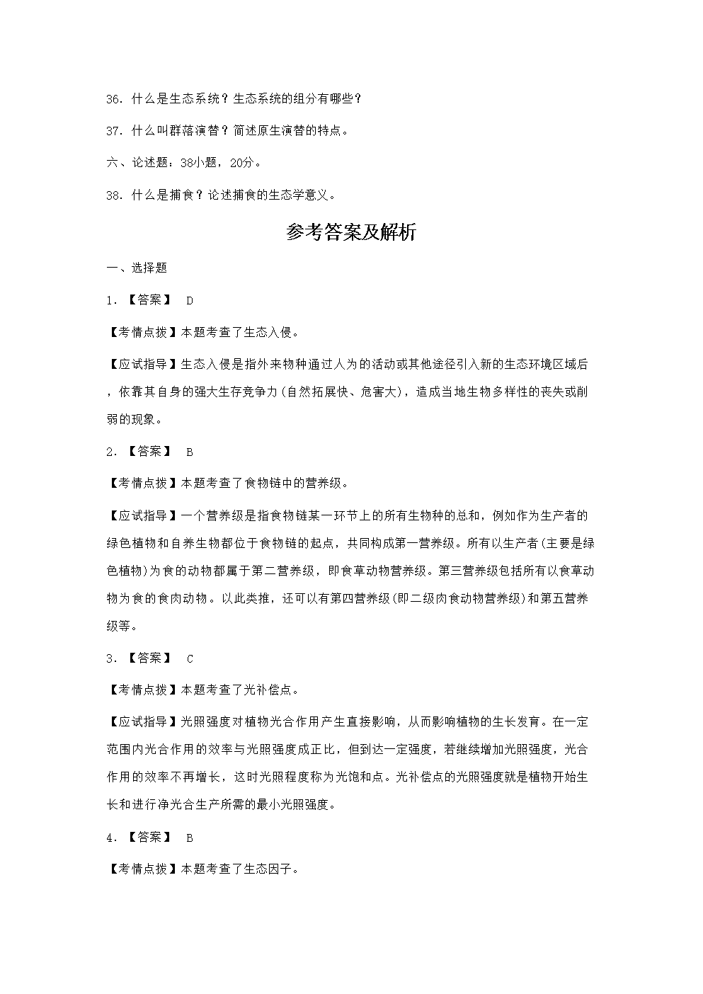 【文档预览】 无忧考网整理发布2021年湖南成人高考专升本生态学基础考试真题及答案(Word版),前五页预览如下:
