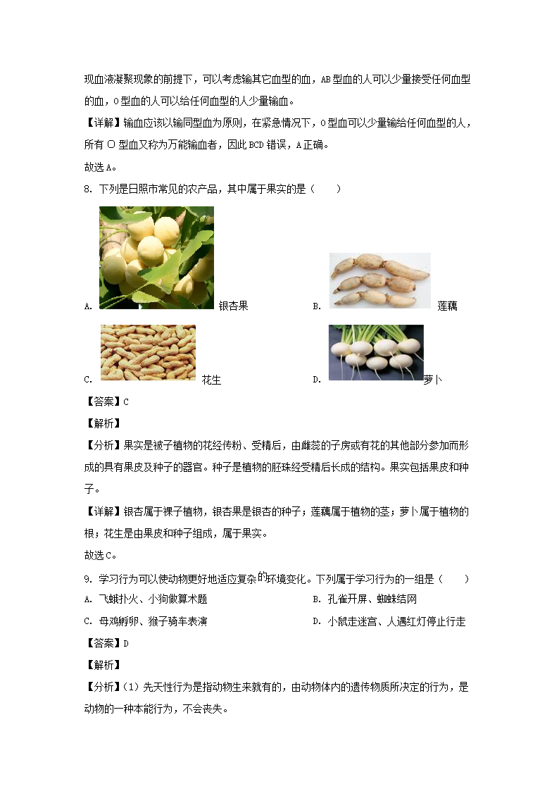 【文档预览】 无忧考网整理发布2021年山东省日照市中考生物真题及答案(Word版),前五页预览如下: