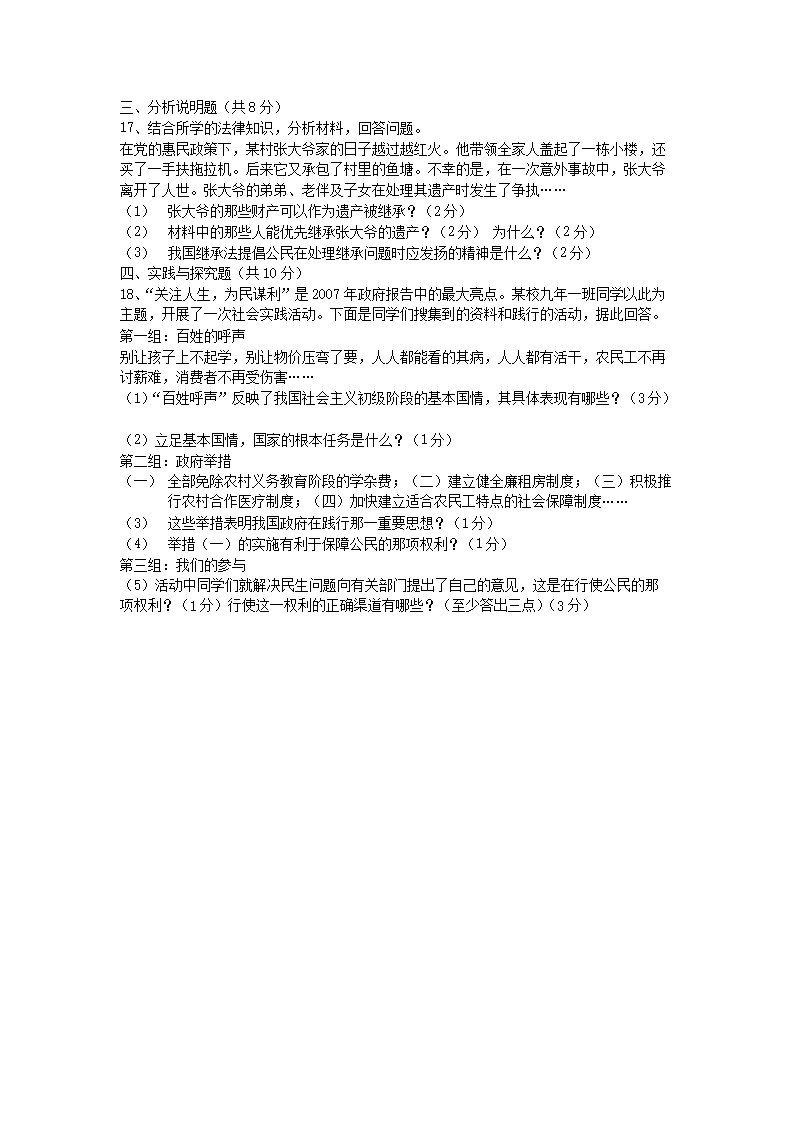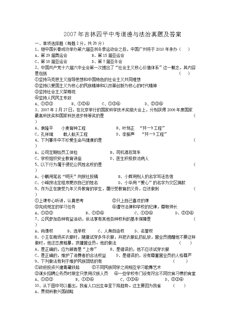 【文档名称】 2007年吉林四平中考道德与法治真题及答案(Word版).doc