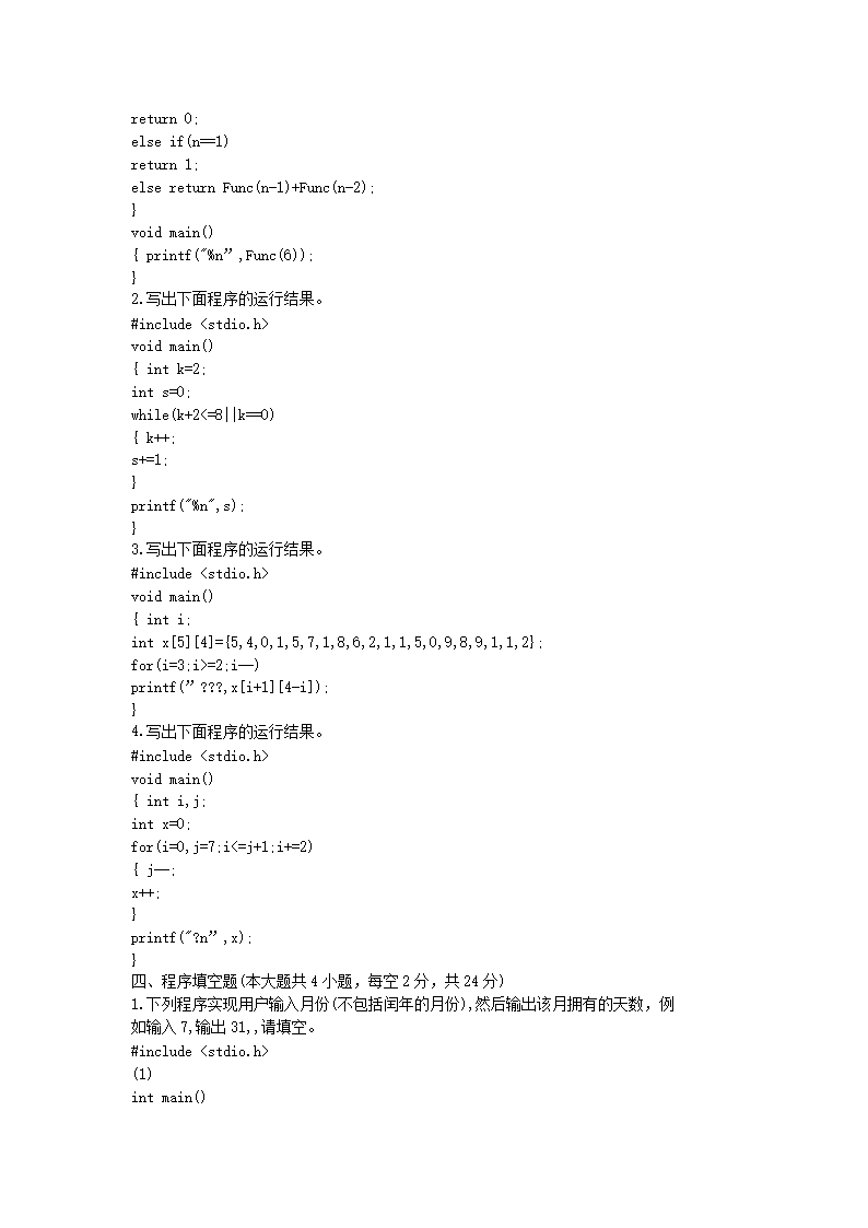【文档名称】 2016年江西师范大学程序设计(C语言)考研真题(Word版).doc