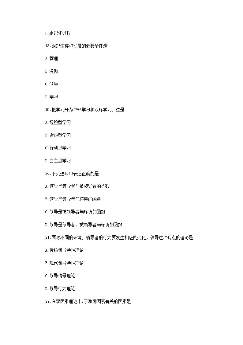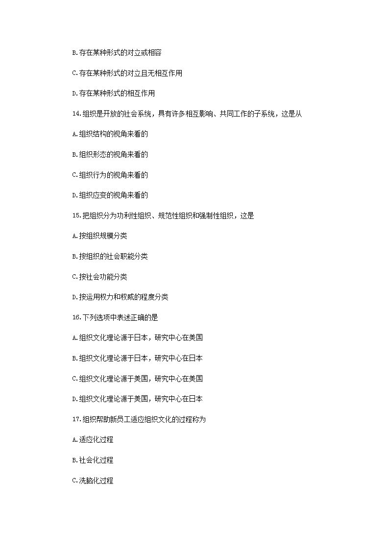 【文档预览】 无忧考网整理发布2021年4月上海自考组织行为学真题(Word版),前五页预览如下: