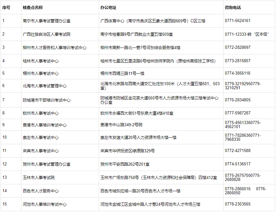 4.全区人事考试机构(核查点)地址及联系方式如下: