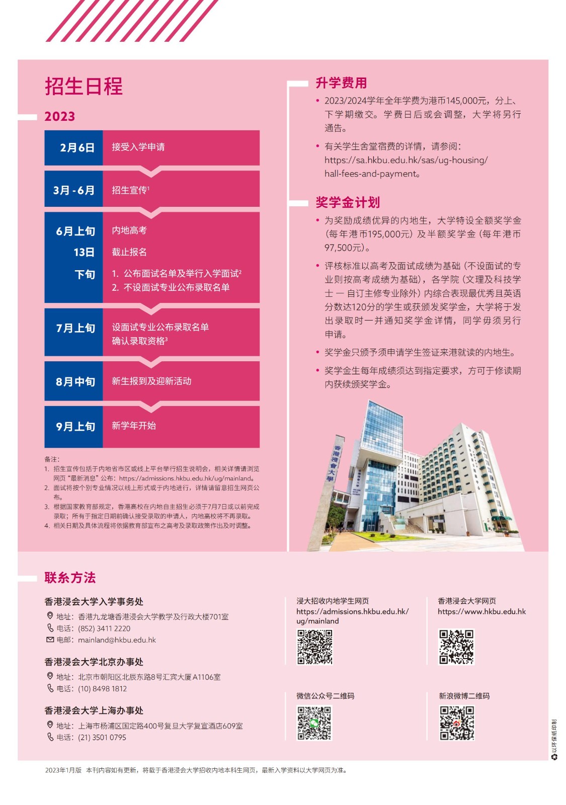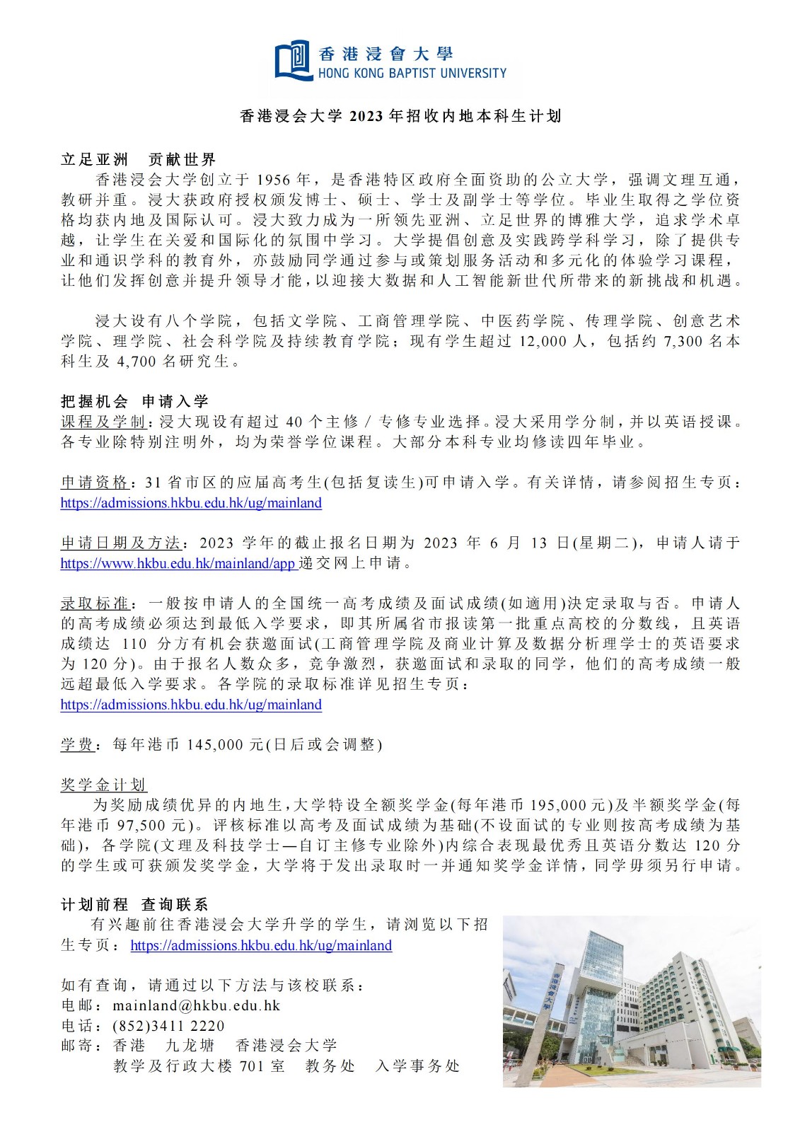 【#高考# #香港浸会大学2023年内地招生信息公布#】©无忧考网高考频道从湖南招生考试信息港了解到,香港浸会大学2023年内地招生信息已公布,具体如下: