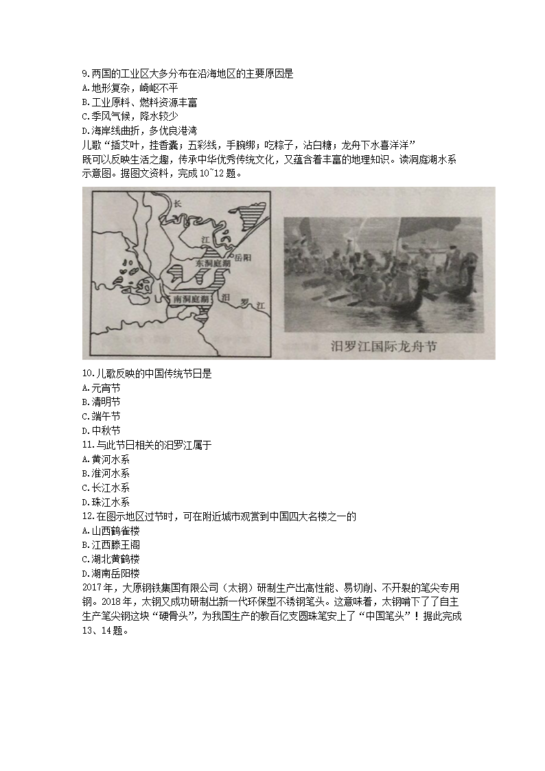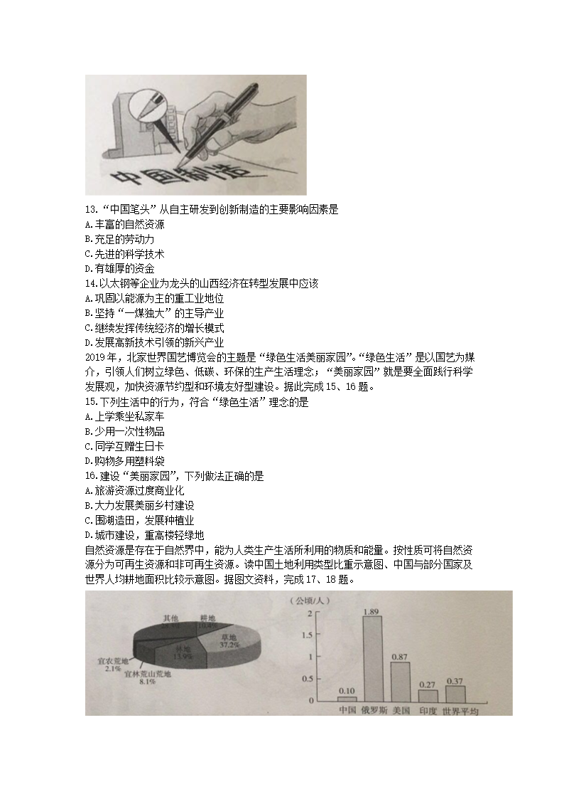 【文档名称】 2019年山西运城中考地理真题及答案(Word版).doc