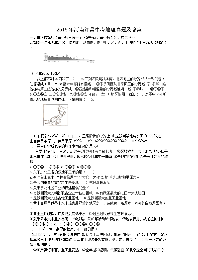 【文档预览】 无忧考网整理发布2016年河南许昌中考地理真题及答案(Word版),前五页预览如下: