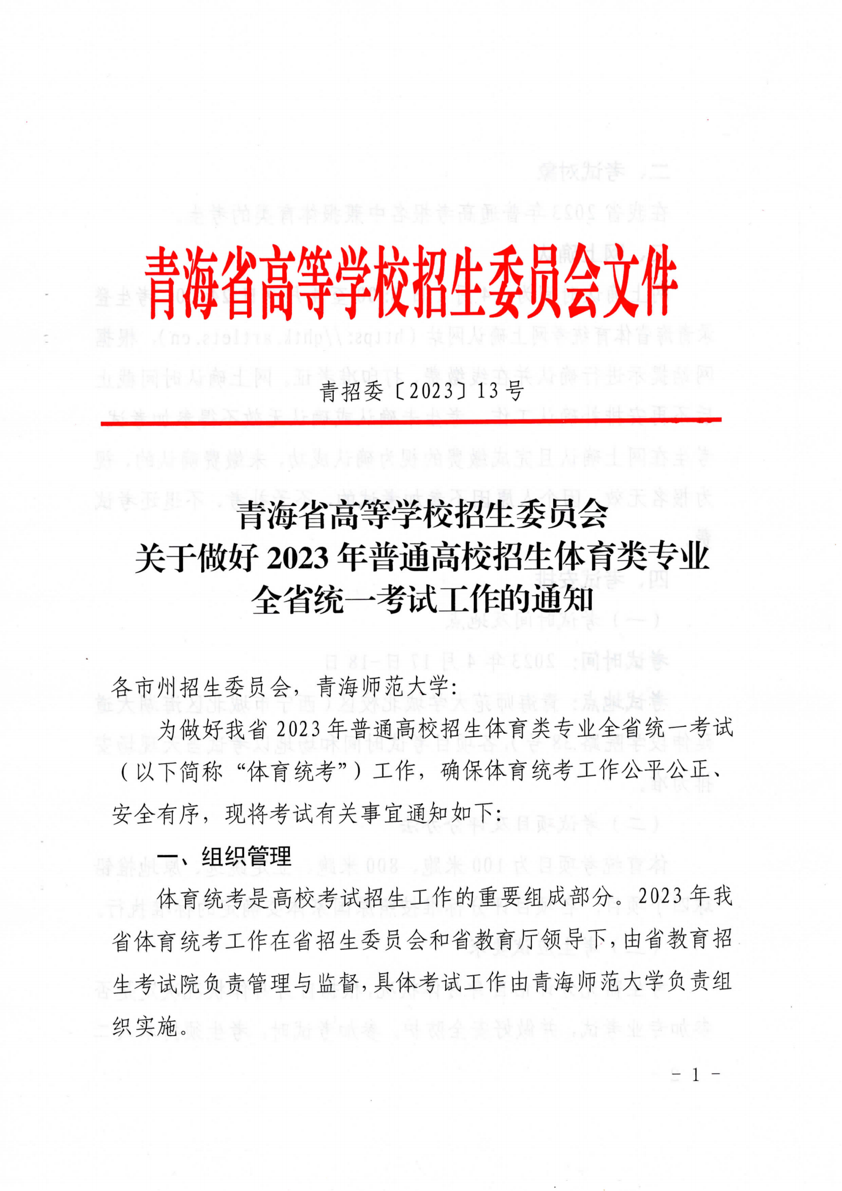 原文标题:青海省高等学校招生委员会关于做好2023年普通高校招生体育类专业全省统一考试工作的通知