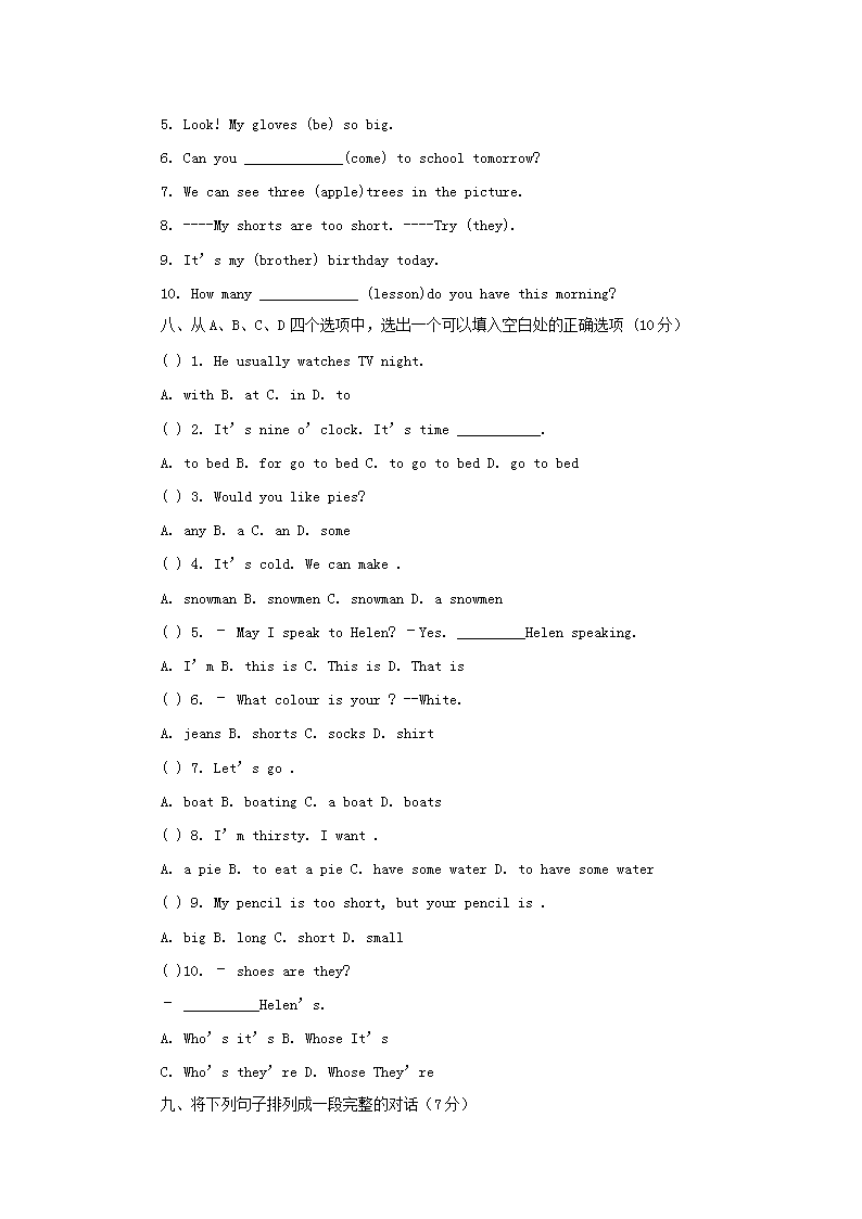 【文档预览】 无忧考网整理发布2022年贵州省贵阳市小升初英语真题及答案(Word版),前五页预览如下: