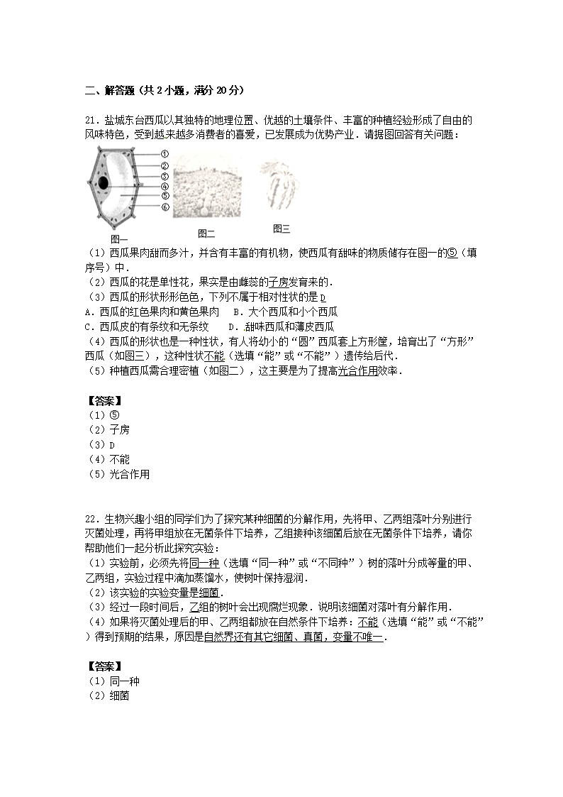 【文档预览】 无忧考网整理发布2016年江苏盐城中考生物真题及答案(Word版),前五页预览如下: