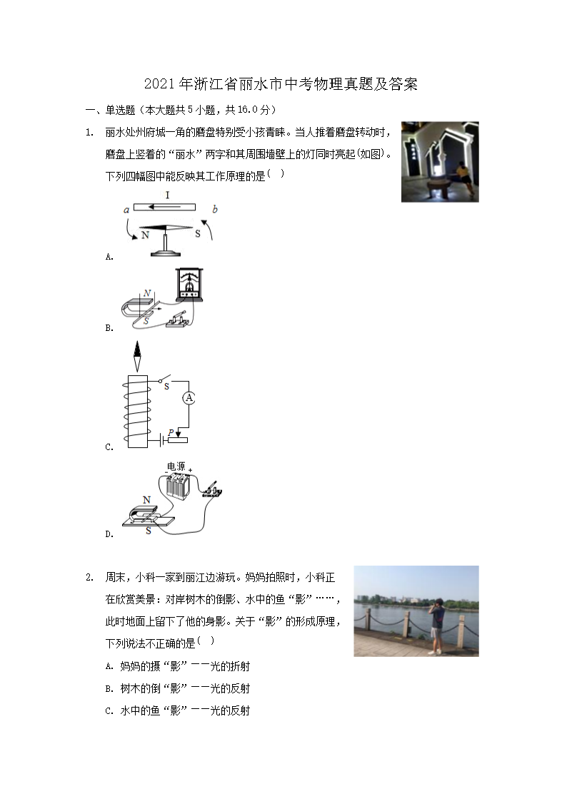 【文档名称】 2021年浙江省丽水市中考物理真题及答案(Word版).doc