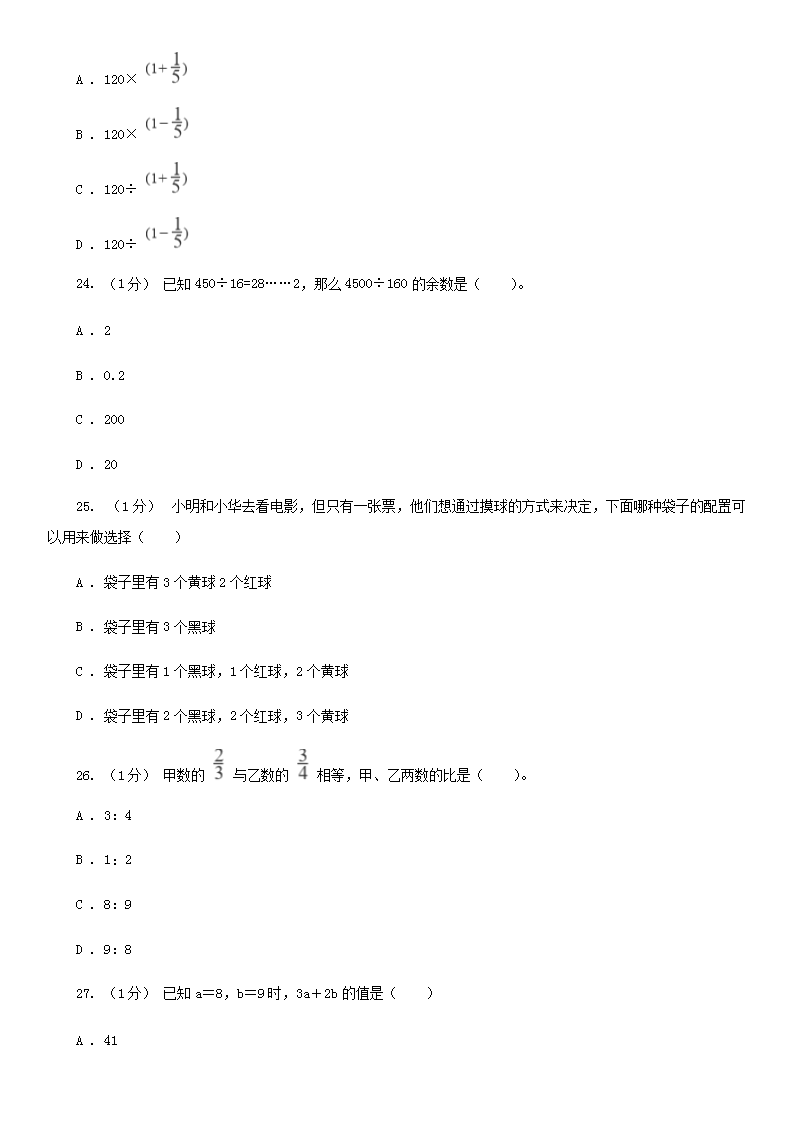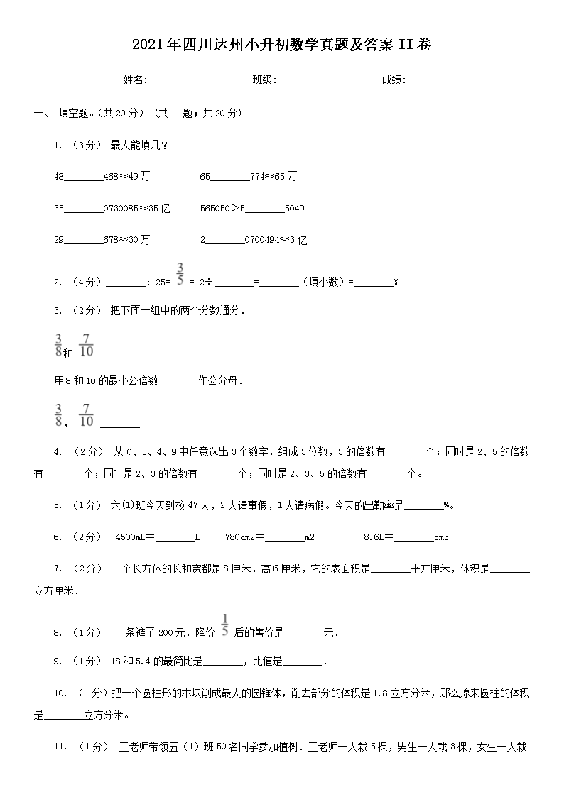 【文档名称】 2021年四川达州小升初数学真题及答案II卷(Word版).doc