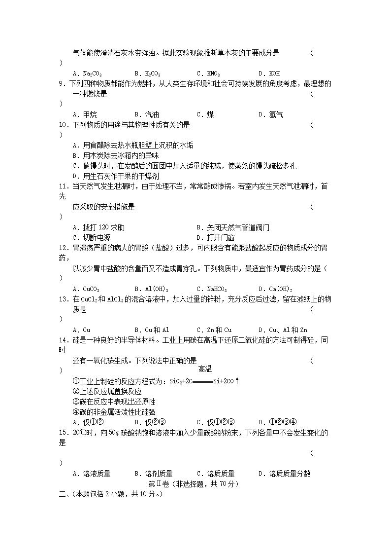 【文档名称】 2004年四川省成都市中考化学真题及答案(Word版).doc