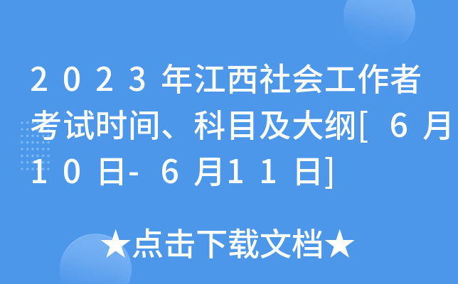 【#社会工作者职业水平考试# #2023年江西社会工作者考试时间、科目及大纲[6月10日-6月11日]#】®无忧考网从江西人事考试网发布的《2023年江西社会工作者职业水平考试工作通知》得知,2023年江西社会工作者考试时间、科目及大纲已公布,考试时间为6月10日-6月11日,具体详情如下: