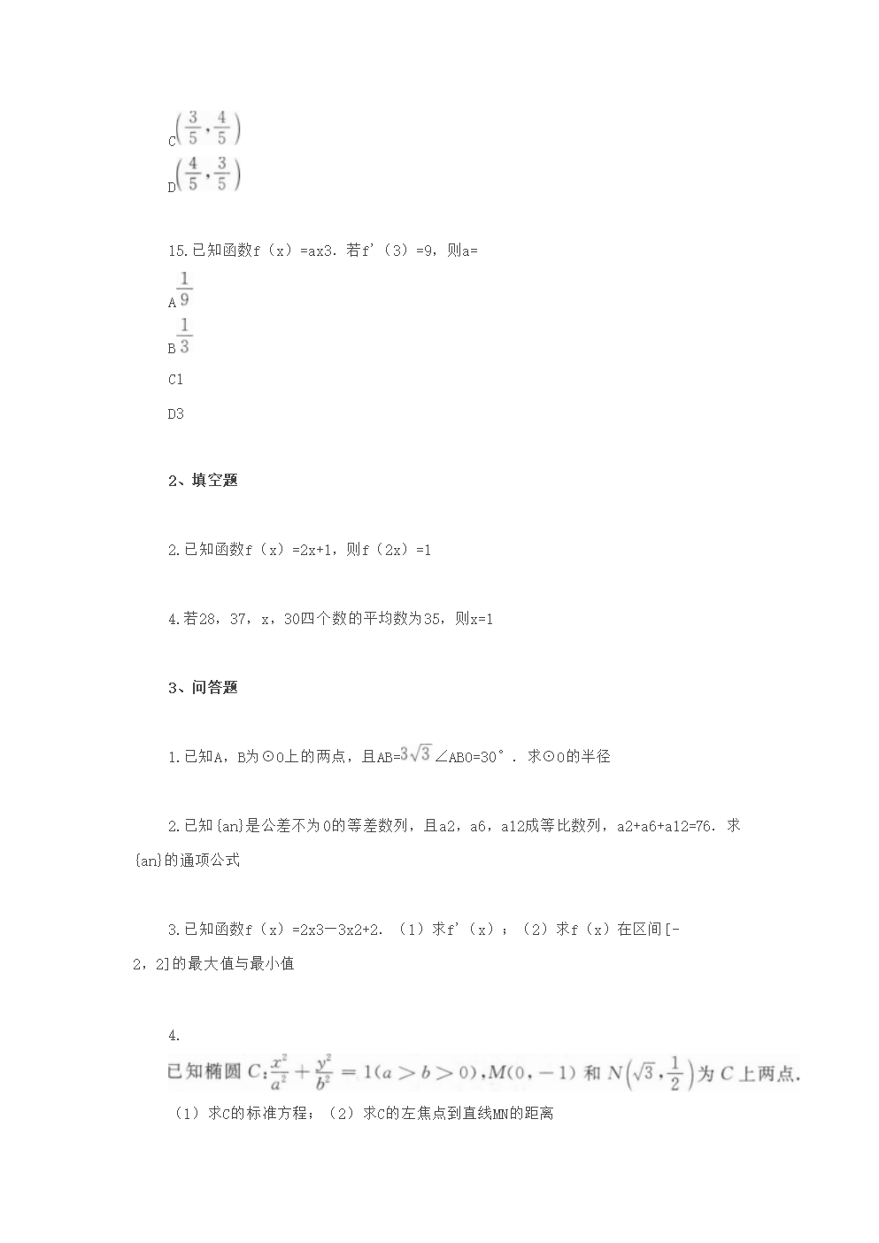 【文档预览】 无忧考网整理发布2021年天津成人高考高起点数学(文)考试真题及答案(Word版),前五页预览如下: