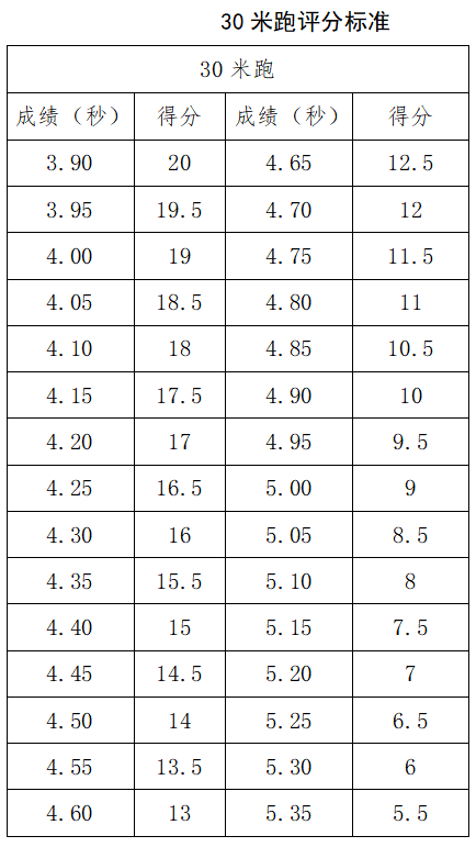 (3)田赛项目考试,每名考生均有3次试跳或试投机会,计取成绩换算成得分。
