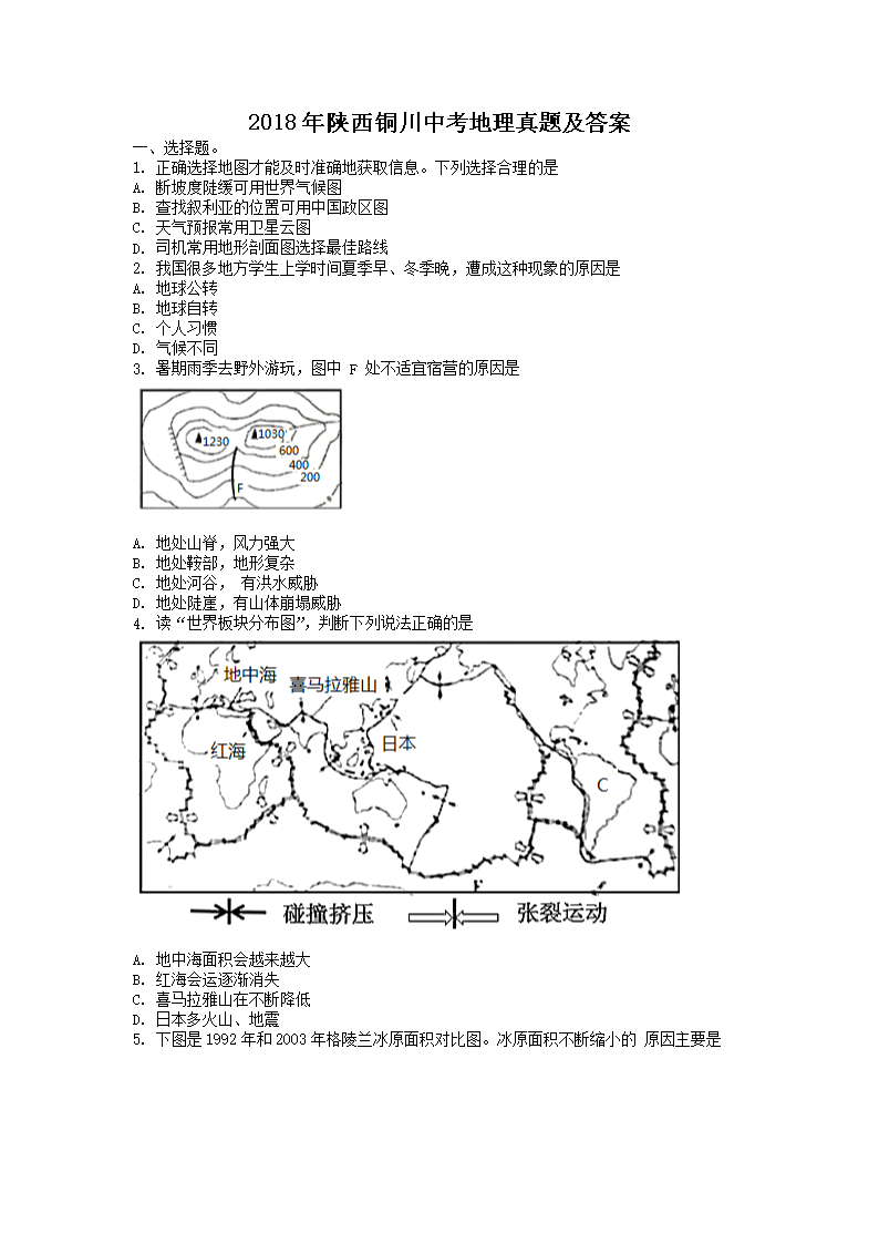 【文档预览】 无忧考网整理发布2018年陕西铜川中考地理真题及答案(Word版),前五页预览如下: