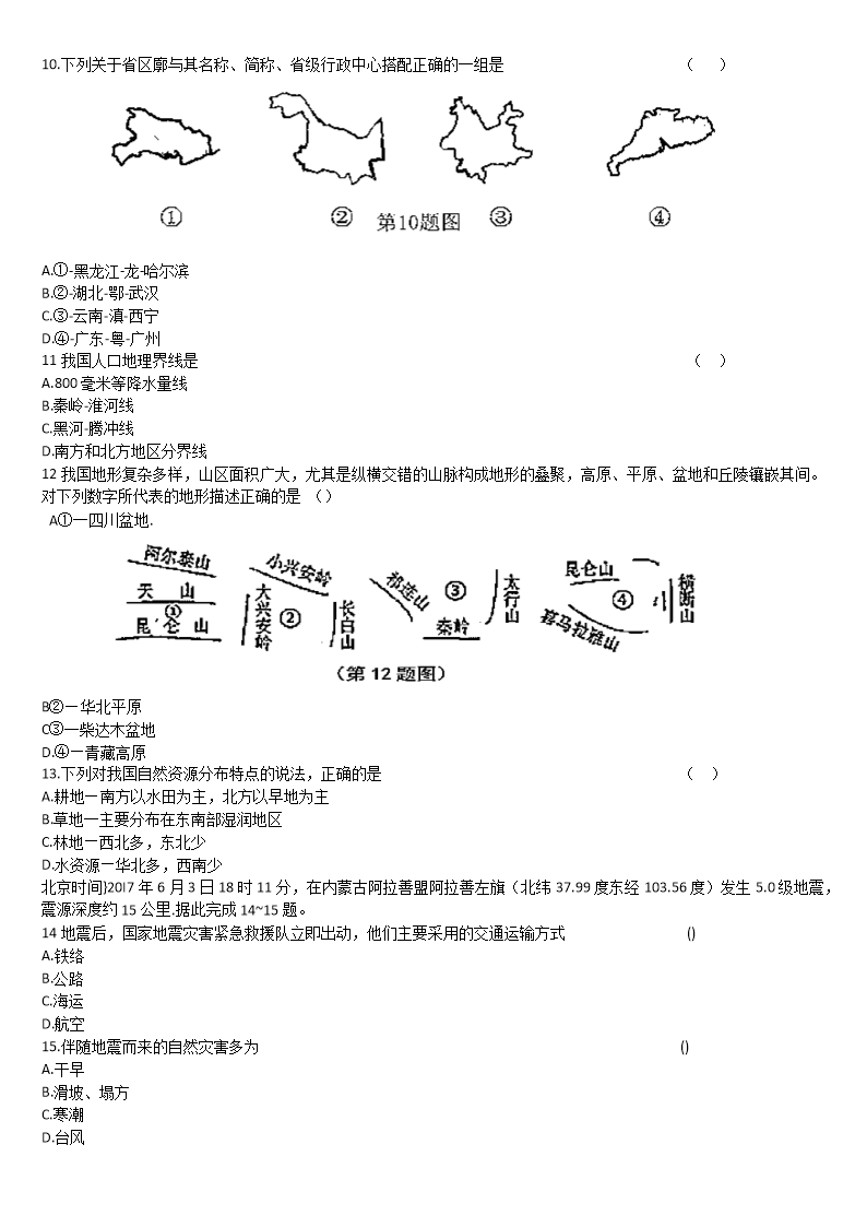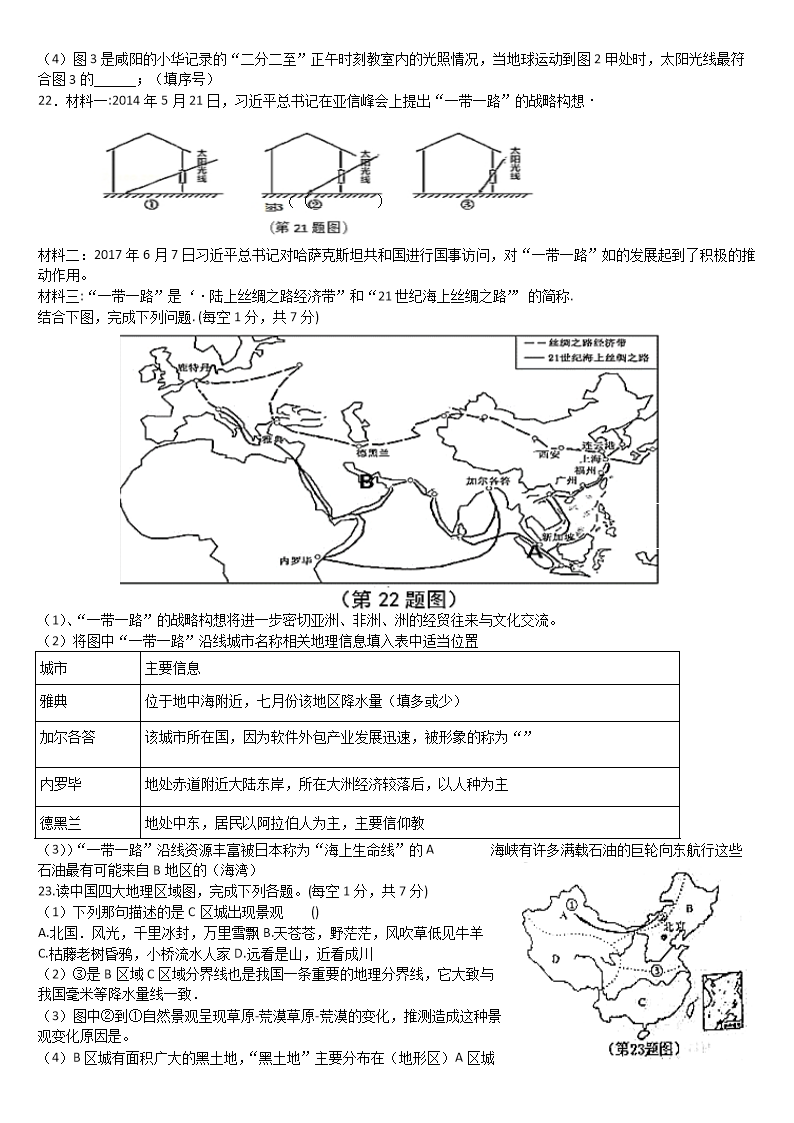 【文档名称】 2017年陕西渭南中考地理真题及答案(Word版).doc