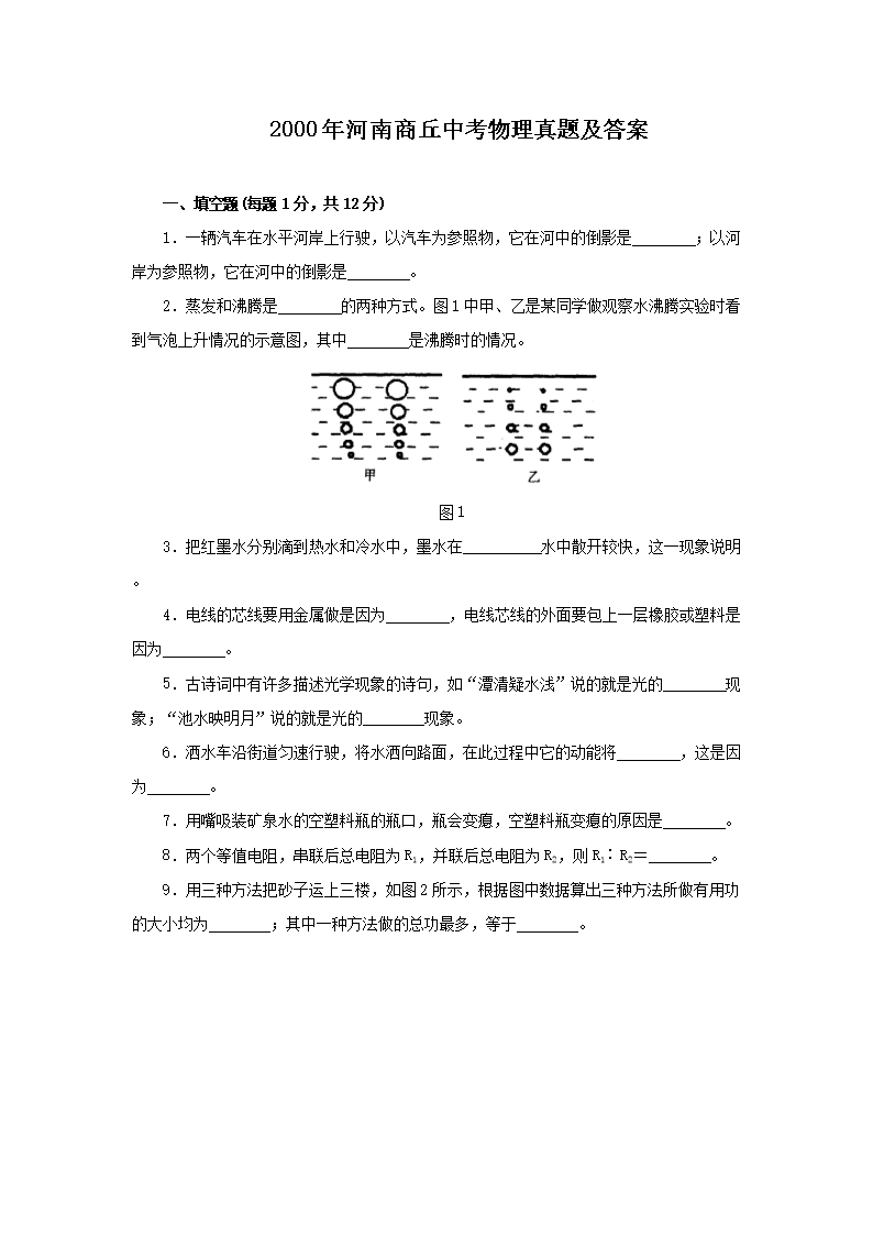 【文档预览】 无忧考网整理发布2000年河南商丘中考物理真题及答案(Word版),前五页预览如下:
