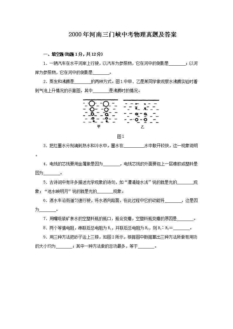 【文档名称】 2000年河南三门峡中考物理真题及答案(Word版).doc