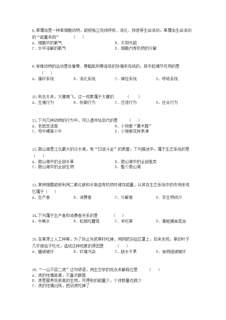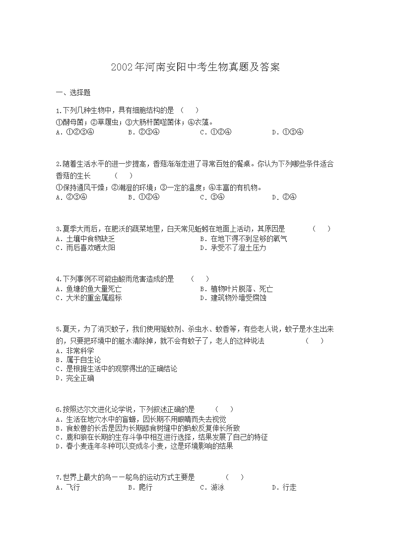 【文档名称】 2002年河南安阳中考生物真题及答案(Word版).doc