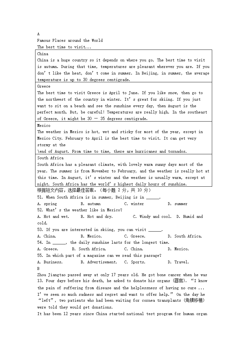 【文档预览】 无忧考网整理发布2022年青海玉树中考英语真题及答案(Word版),前五页预览如下:
