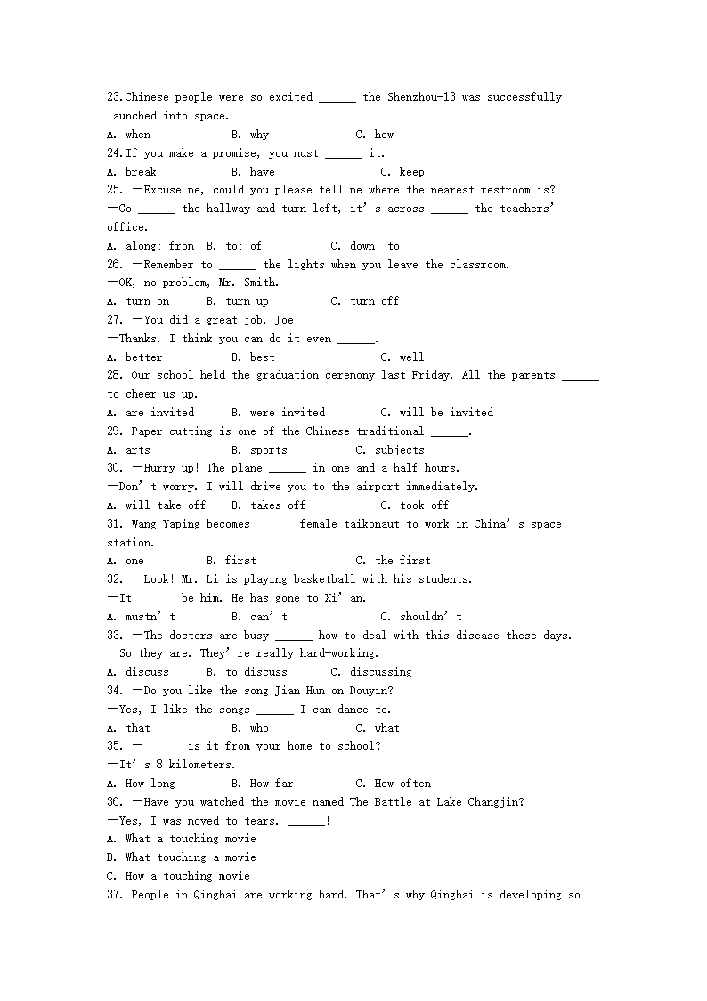 【文档名称】 2022年青海海西中考英语真题及答案(Word版).doc