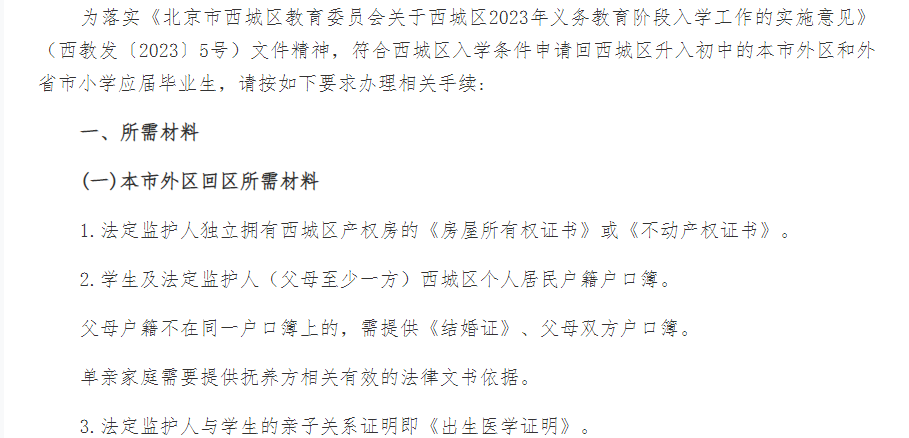 原文标题:2023年符合条件的外区、外省市小学应届毕业生回西城区升初中报名工作的通知
