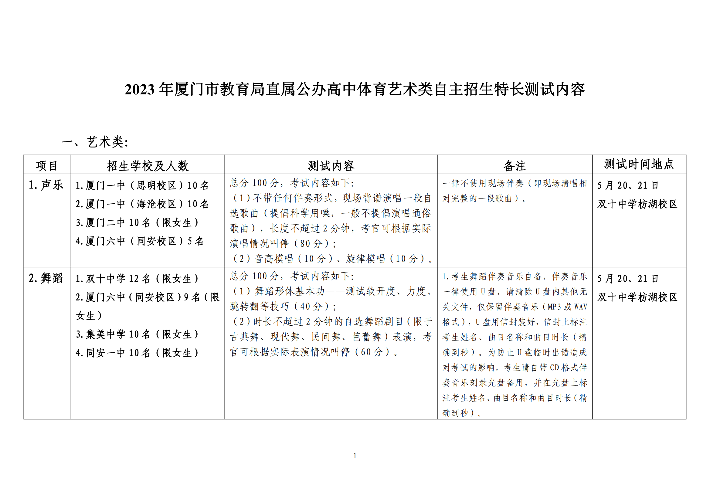 原文标题:2023年厦门市教育局直属公办高中体育艺术类自主招生特长测试内容