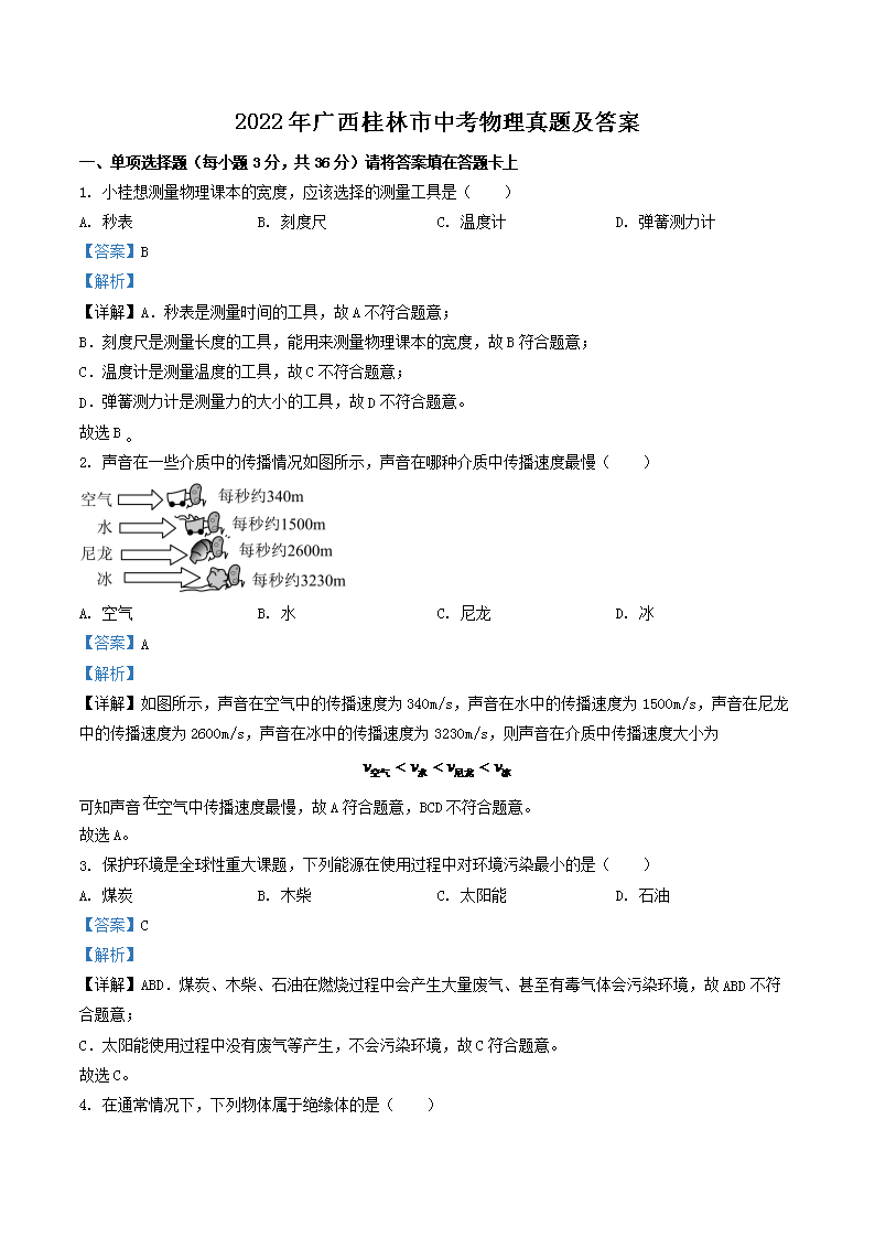 【文档预览】 无忧考网整理发布2022年广西桂林市中考物理真题及答案(Word版),前五页预览如下: