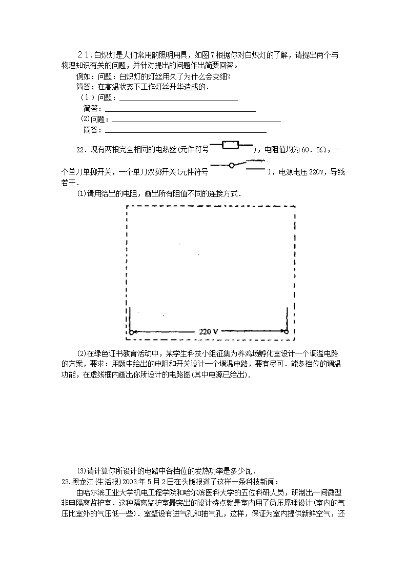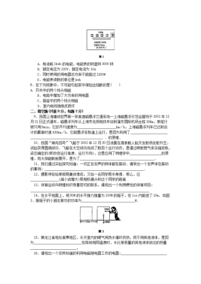 【文档名称】 2003年黑龙江伊春市中考物理真题及答案(Word版).doc