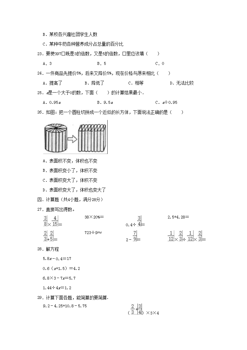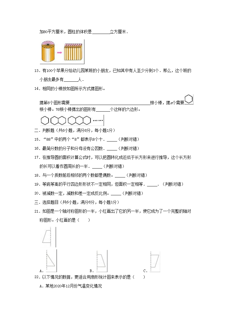 【文档名称】 2021年重庆涪陵小升初数学真题及答案(Word版).doc