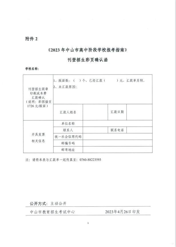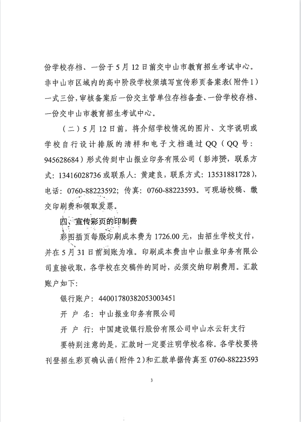 原文标题:关于编印《2023年中山市高中阶段学校招生报考指南》彩图插页的通知