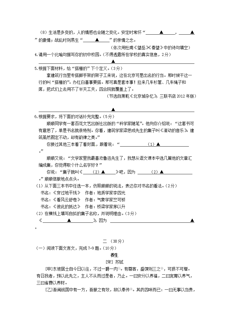 【文档名称】 2016年江苏南京中考语文真题及答案(Word版).doc