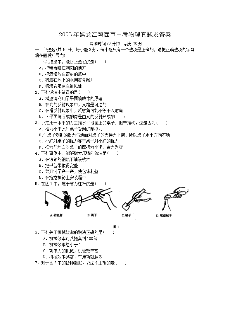 【文档名称】 2003年黑龙江鸡西市中考物理真题及答案(Word版).doc