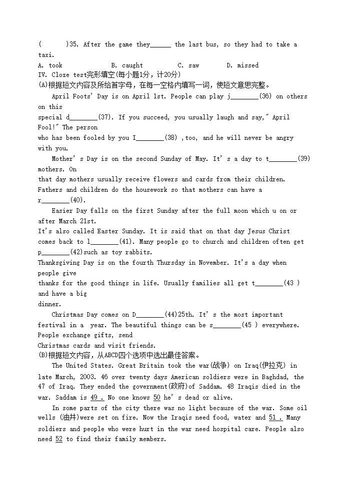 【文档名称】 2003年黑龙江鸡西市中考英语真题及答案(Word版).doc