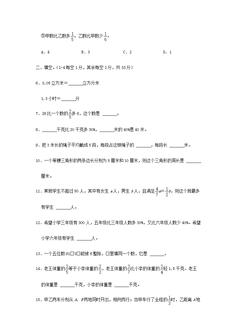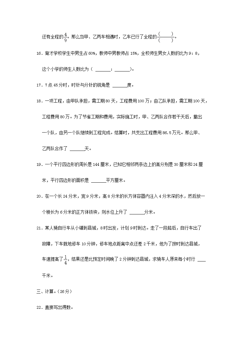 【文档预览】 无忧考网整理发布2022年四川成都小升初数学真题(Word版),前五页预览如下: