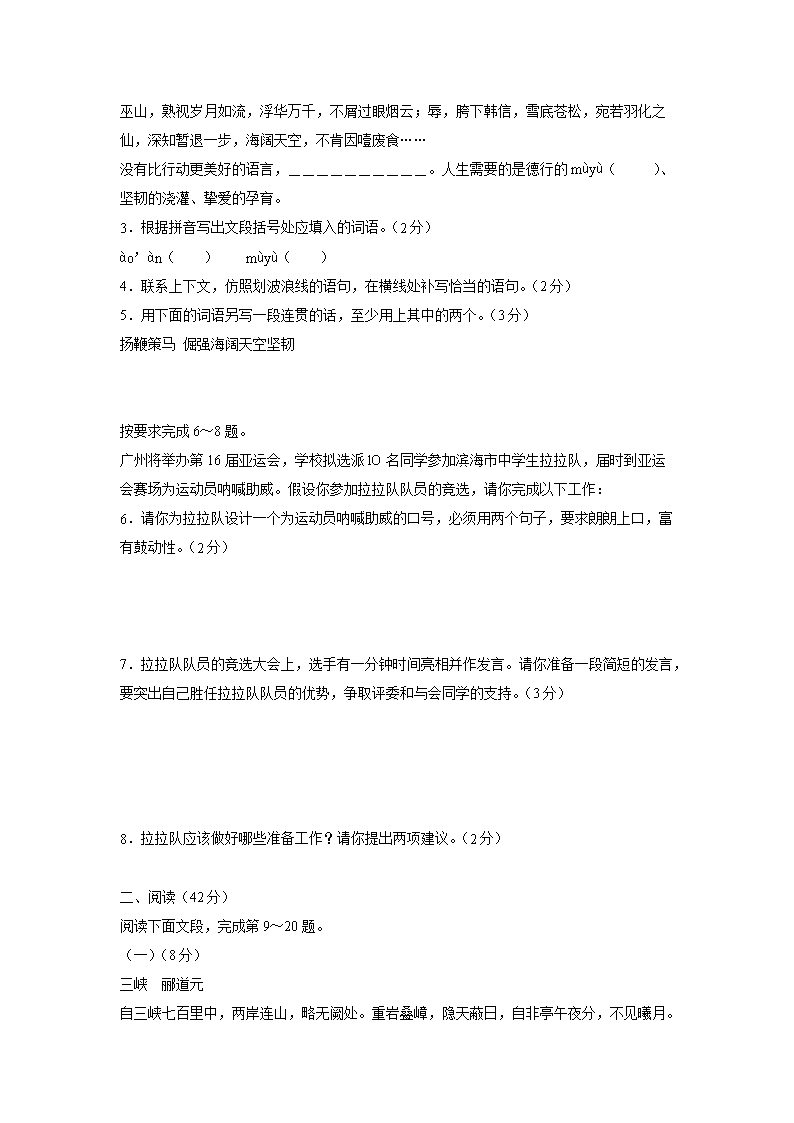 【文档名称】 2001年广东省汕头市中考语文试题及答案(Word版).doc