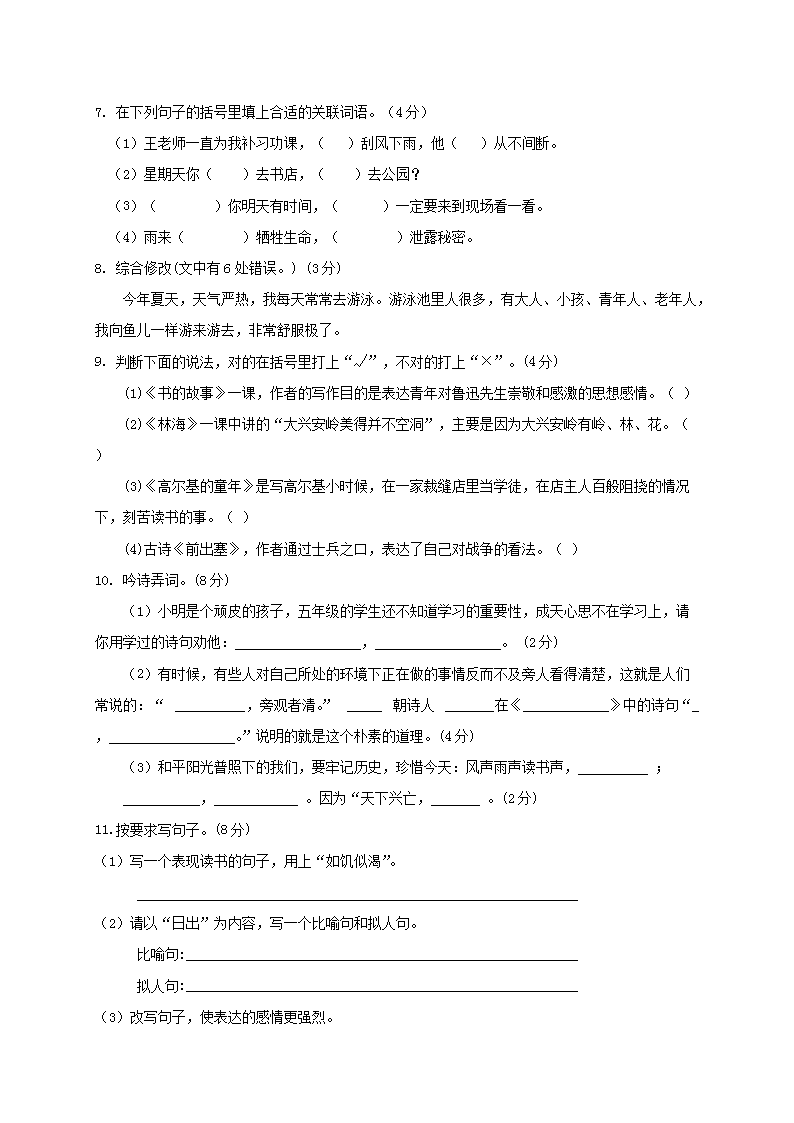 【文档预览】 无忧考网整理发布2018年贵州省遵义市小升初语文考试真题及答案(Word版),前五页预览如下: