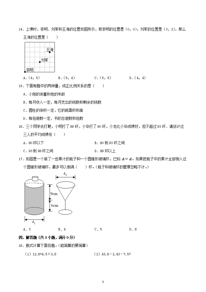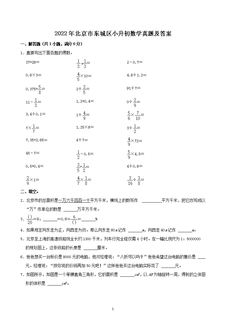 【文档名称】 2022年北京市东城区小升初数学真题及答案(Word版).doc