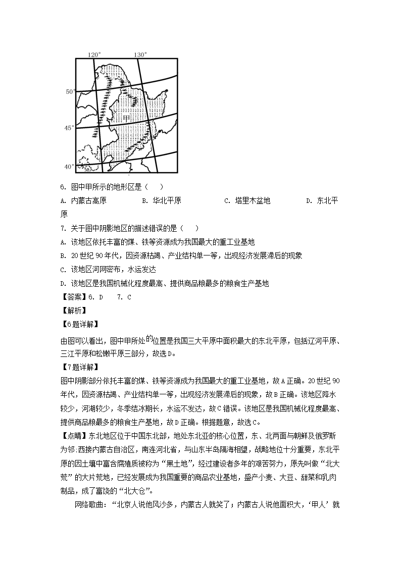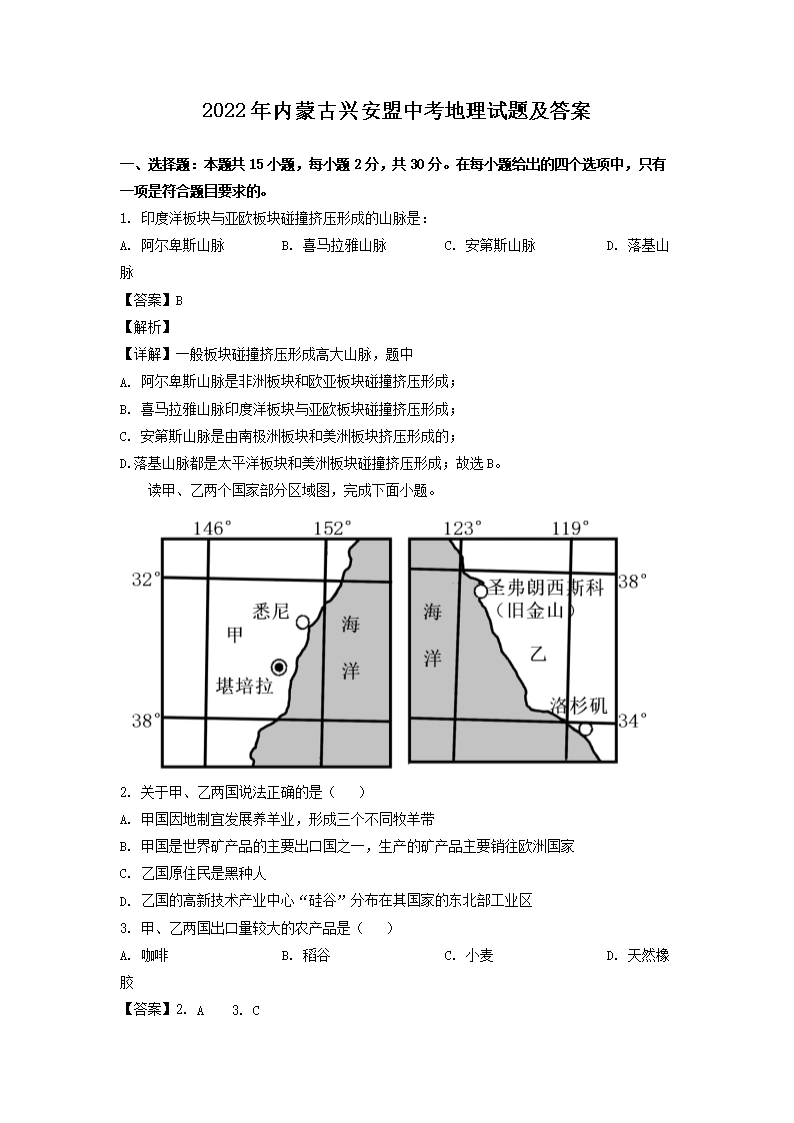 【文档名称】 2022年内蒙古兴安盟中考地理试题及答案(Word版).doc