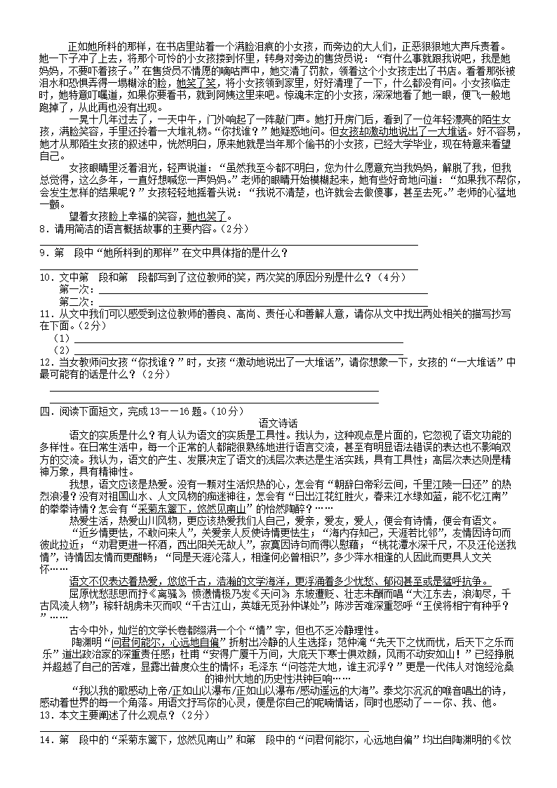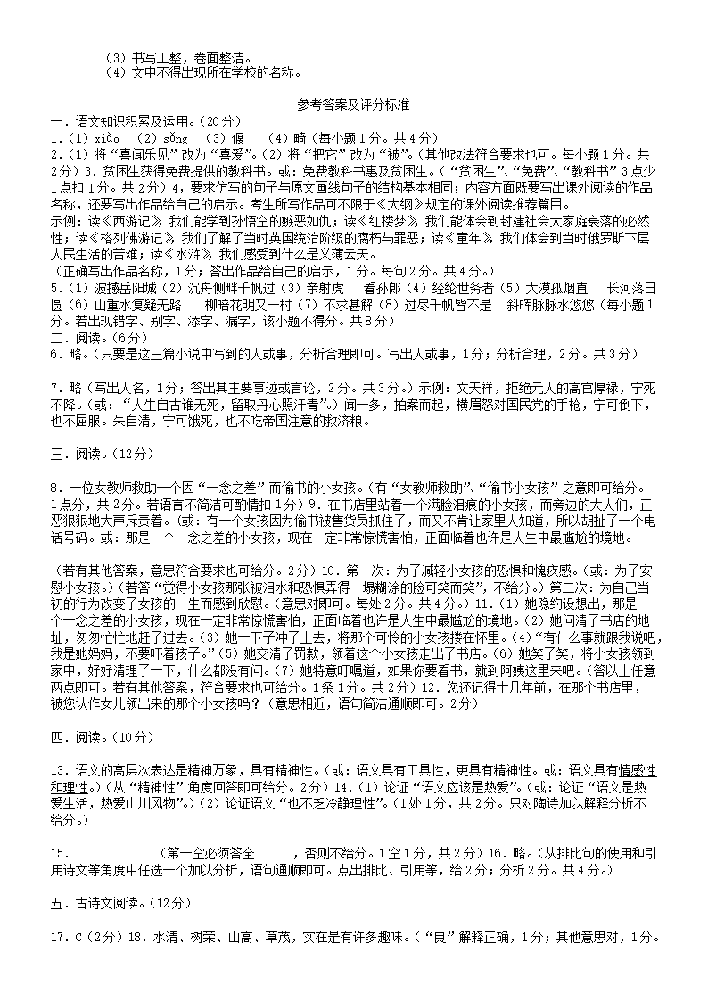 【文档预览】 无忧考网整理发布2004年河南开封中考语文真题及答案(Word版),前五页预览如下:
