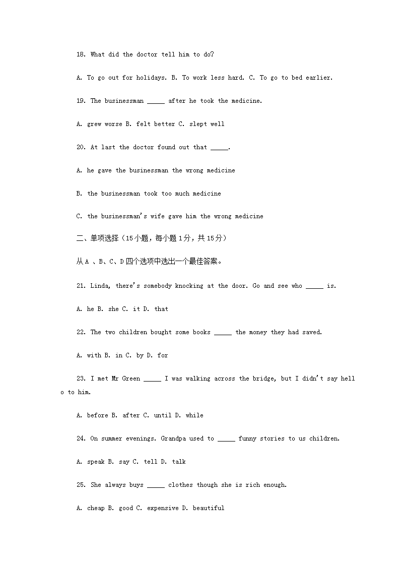 【文档预览】 无忧考网整理发布2004年河南鹤壁中考英语真题及答案(Word版),前五页预览如下: